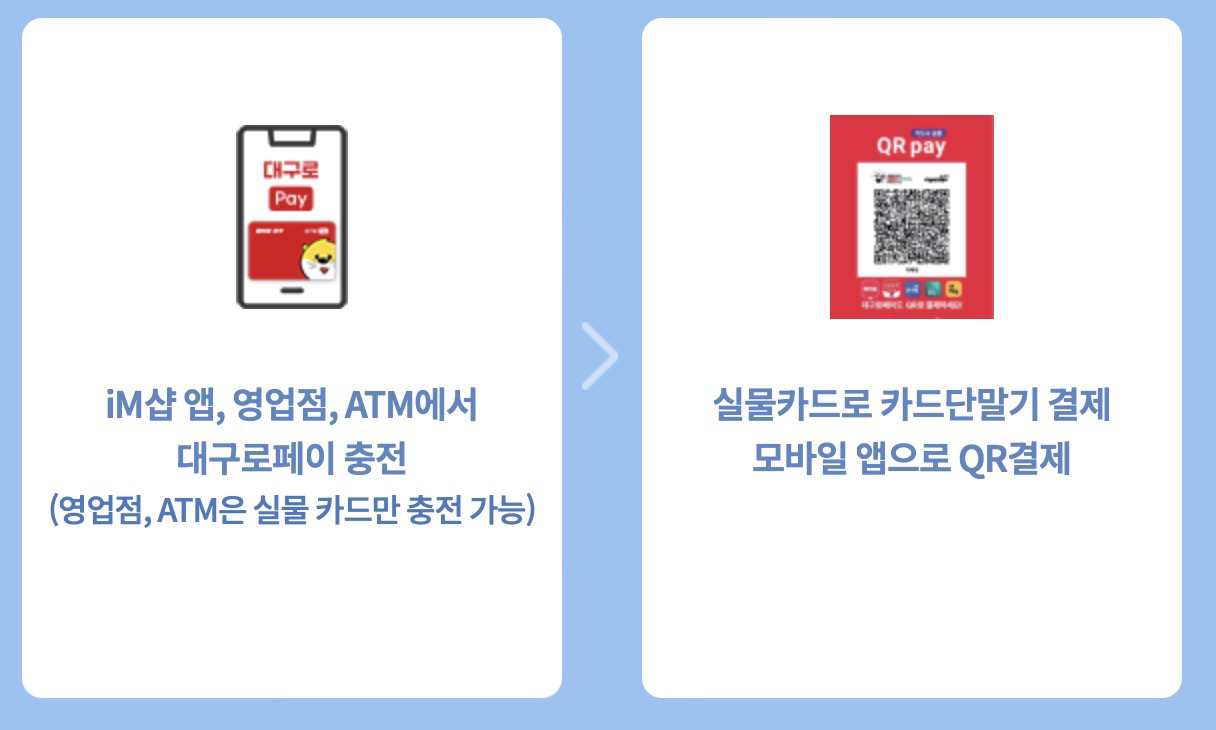 - 온라인: 공공 배달앱 '대구로' 앱 내 결제, 대구로 택시 등